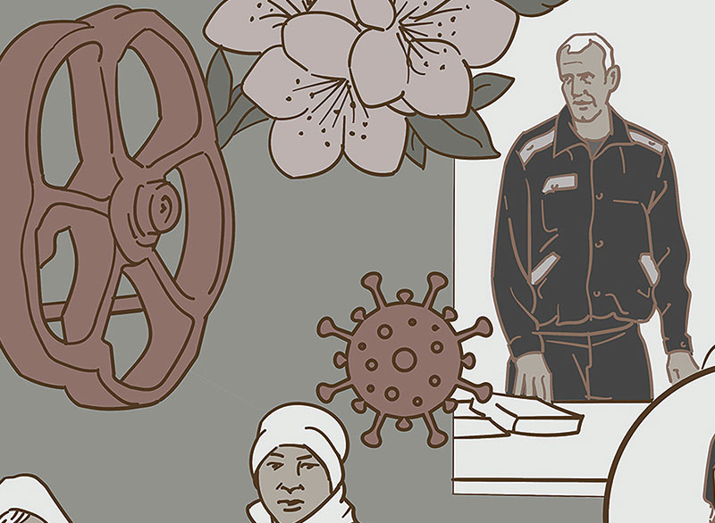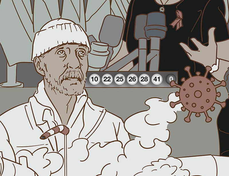Im Hintergrund unseres Bewusstseins ziehen sich Sportnachrichten, Kriegsgeschehen, Überflutung und Corona gleichrangig zu eine Art Gewebe zusammen, das uns ermöglicht eine Distanz aufzubauen, um nicht von den einzelnen Inhalten erdrückt zu werden. Dennoch hinterlässt die dauerhaft bedrohliche Präsenz der täglichen Nachrichten ihre Spuren in unserem Bewusstsein. Vielleicht hilft gerade das bizarre Nebeneinander von Katastrophalem und Harmlosen, das Ganze nicht zu nah an sich heranzulassen. Die Ambivalenz aus Distanzierung und Betroffenheit möchte ich mit dem Nachrichtenteppich zum Ausdruck bringen.